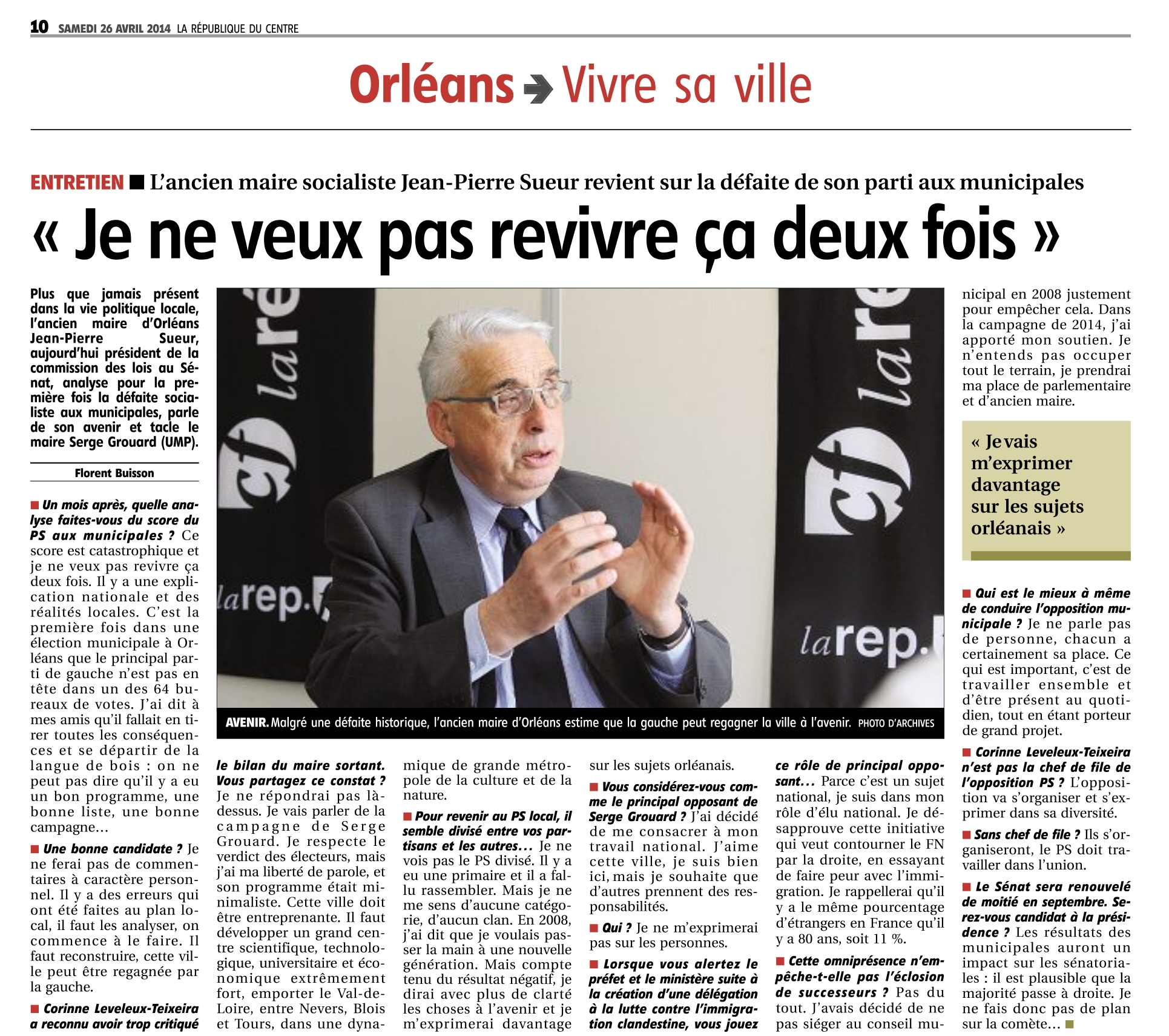 .> Lire l'interview par Florent Buisson dans La République du Centre du 26 avril.